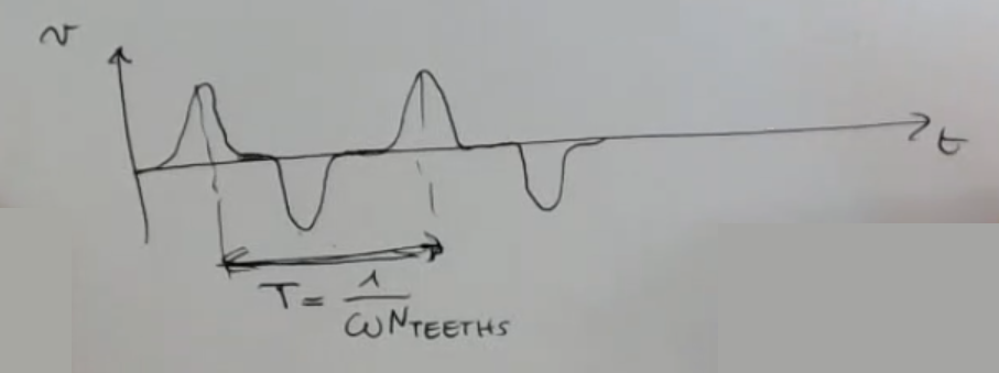 - The period is given by the angular rotation between two theeth, the more theet the wheel has, the lower will be the period:Where: