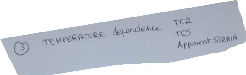 - Look out for the Dependance on Temperature of the Strain Gauge, more specifically we have three things that we have to look at, which are: