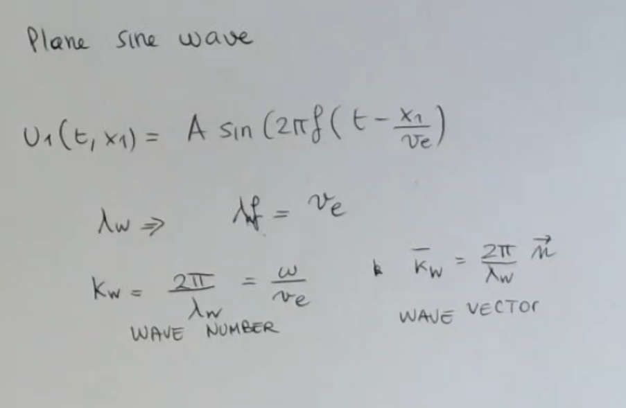 We take for instance a sine plane wave, and we take only a forward-propagating wave, so we define that we said was a generic function as:Where: is decided by the freqency at which the piezoelectric ultrasonic transducer vibrates.