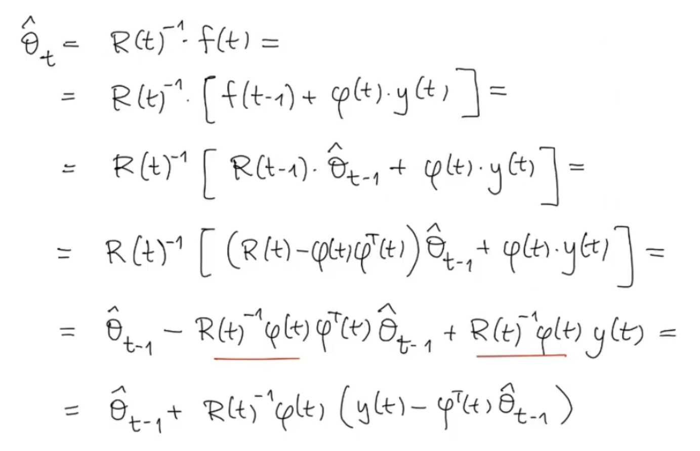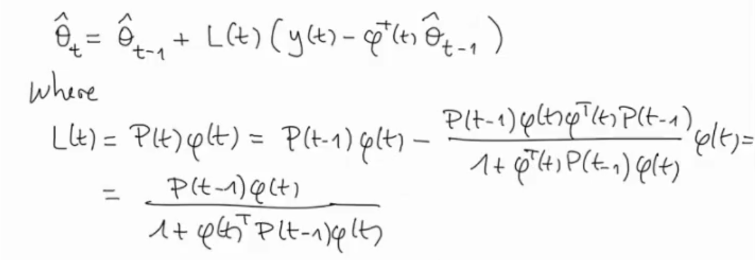 We have now obtained a recursive algorithm, to find the parameter vector :