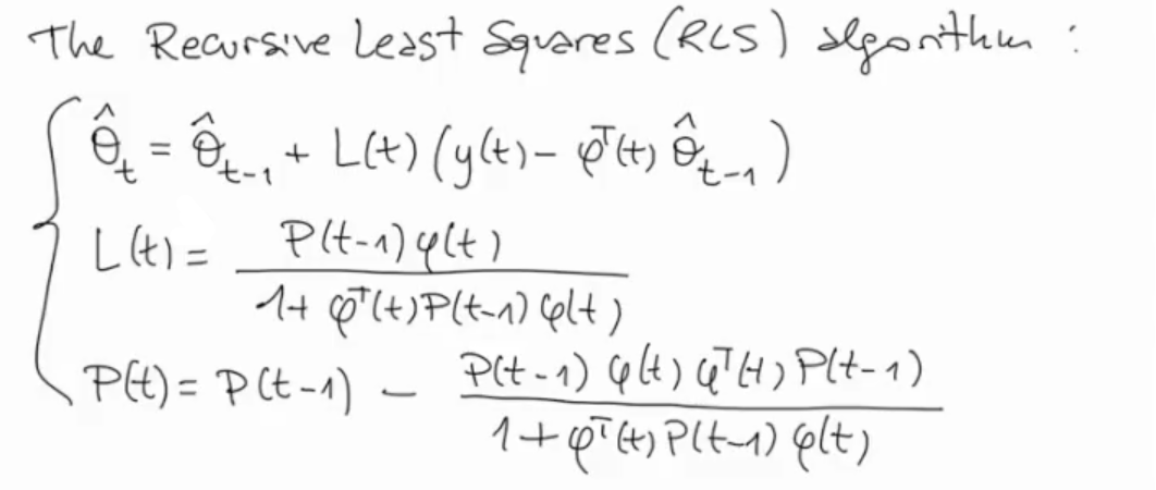 Finally we can summarize and define the RLS (Recursive Least Squares) algorithm: