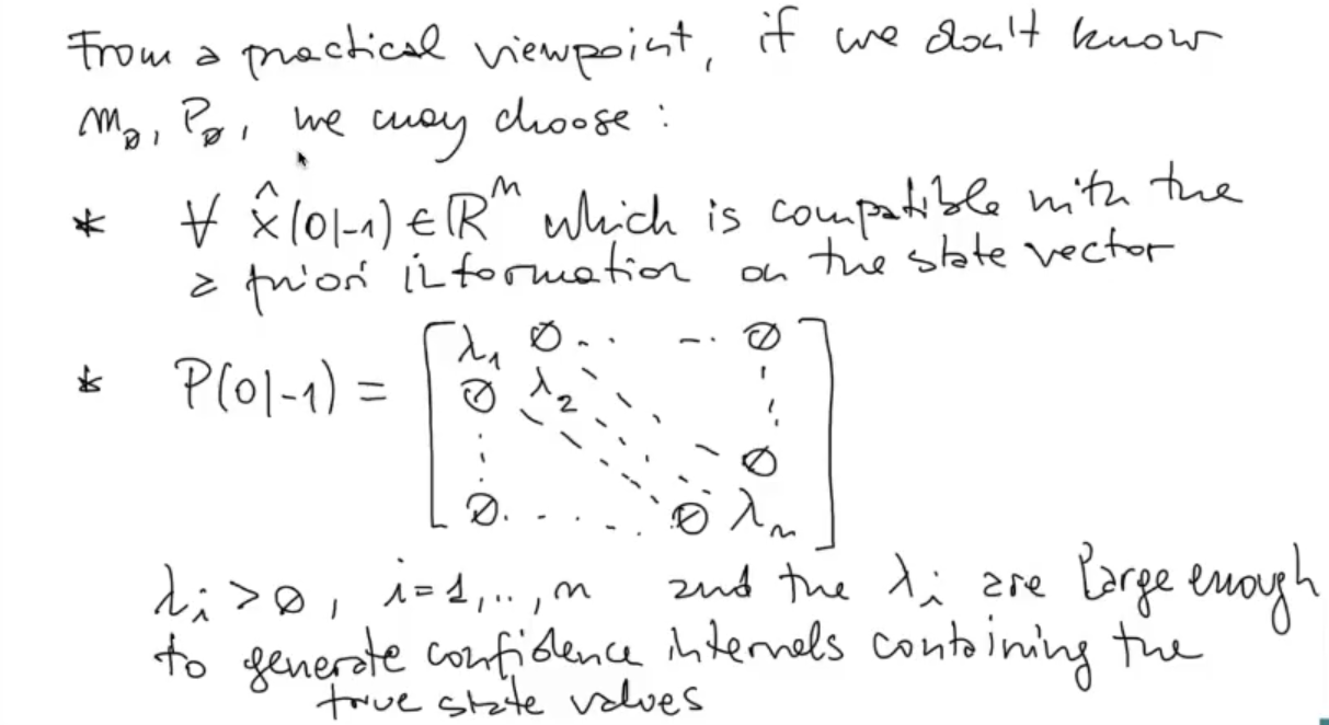 But even if we choose too small, such that is not inside the confidence interval, the KF will still converge to the “optimal” solution MSE if the state of the problem is not Gaussian, LSME if it is Gaussian, tho is better to choose bigger, the KF will converge sooner.