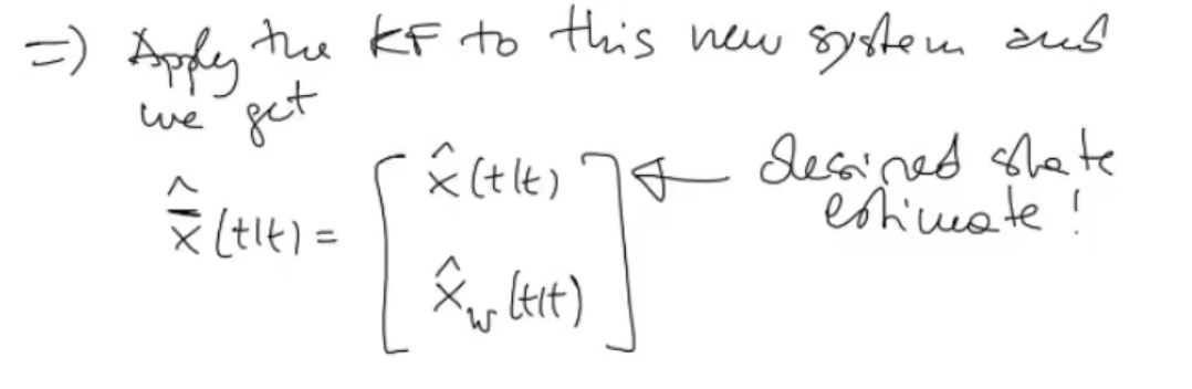 We have created a new system, where the previous non-white process is “absorbed” by the black-box state, so now we can still apply the KF to this new system: