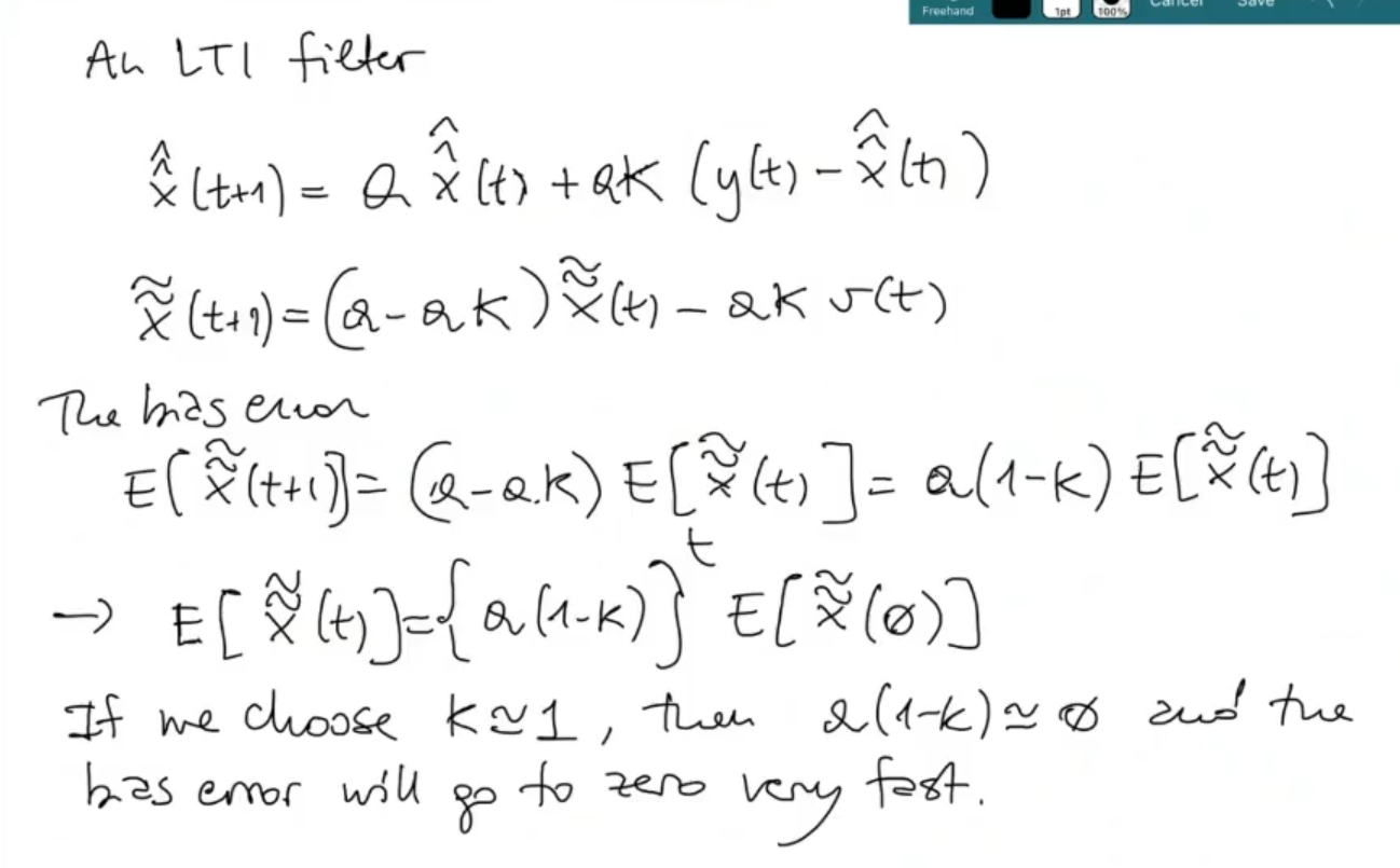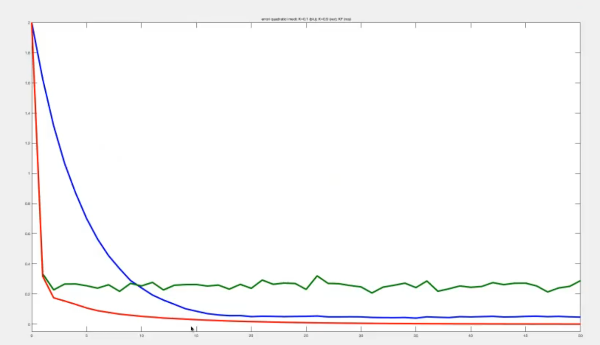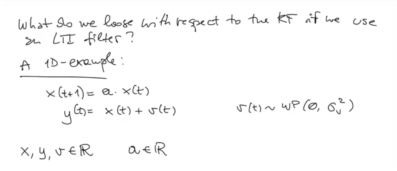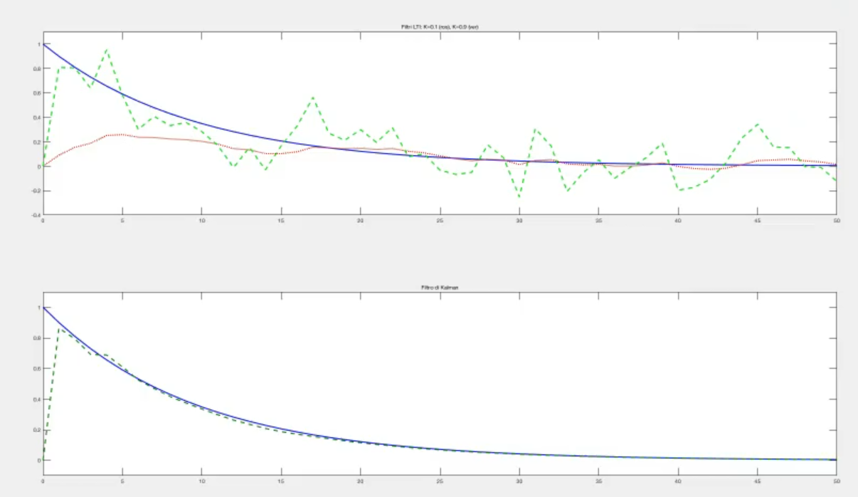 LTI Filters using 2 different constant (which is bad, while in the KF, varies with each iteration, this graph does not show a KF)