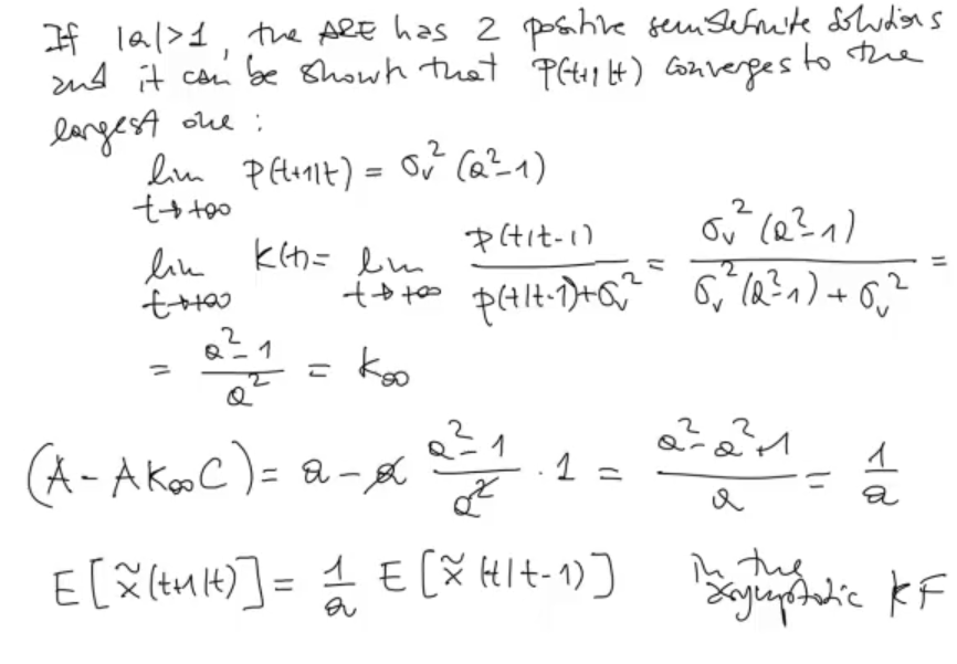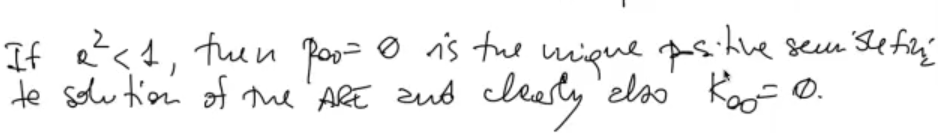 as the Discrete Riccati Equation (for this particular model) and we analyzed what would happen for , we defined the following as the “Algebric Riccati Equation”: