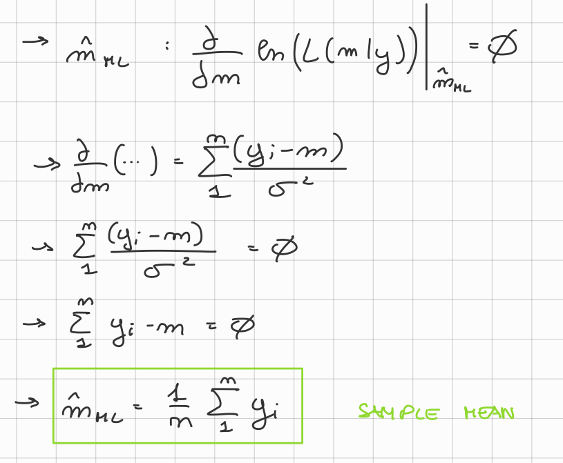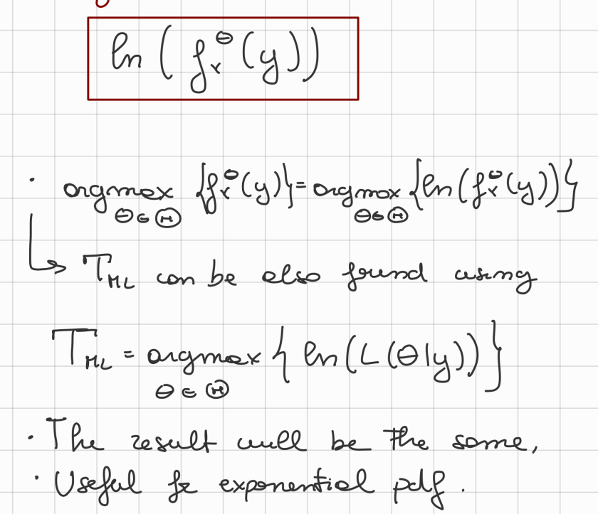 The maximum likelihood estimator searches for the max value of the pdf function where is our parameter to be estimated, we have said that is also equal to the mean of this pdf which is also equal to its max value, here’s way the ML Estimator.